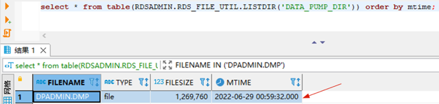 select * from table(RDSADMIN.RDS_FILE_UTIL.LISTDIR('DATA_PUMP_DIR')) order by mtime;