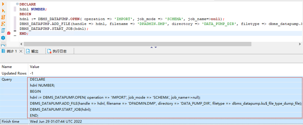 DBMS_DATAPUMP.START_JOB(hdnl);