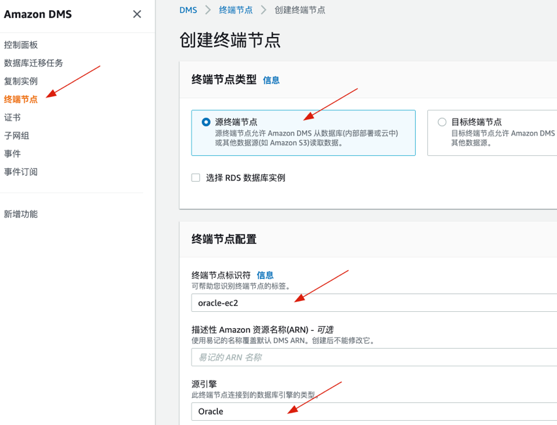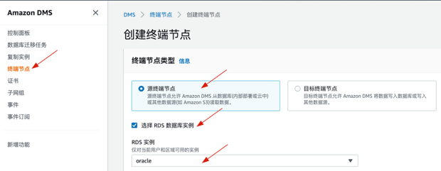 1. 创建终端节点 RDS Oracle,只需选择已有的实例即可。