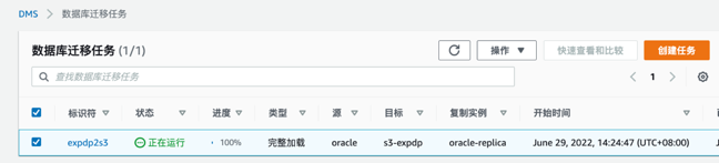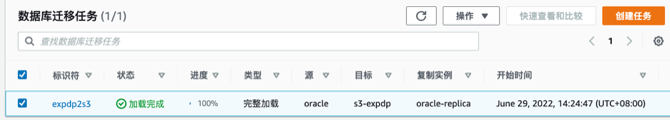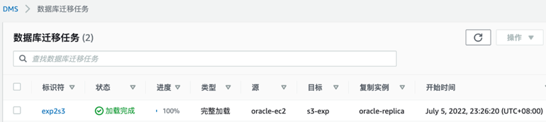 4. 观察数据库迁移任务状态,从“正在运行”到“加载完成”。