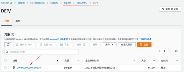 LOCATION 's3://ora-datadump/output/expdp/DPADMIN/DEP/'