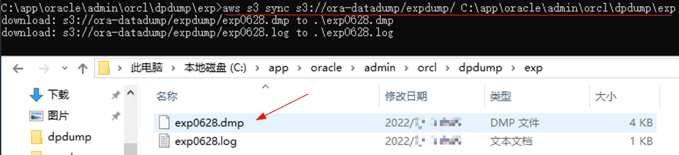 C:\aws s3 sync s3://ora-datadump/expdump/ C:\app\oracle\admin\orcl\dpdump\exp