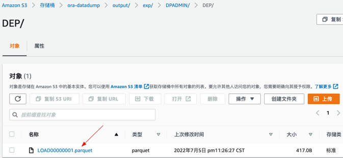 LOCATION 's3://ora-datadump/output/exp/DPADMIN/DEP/'
