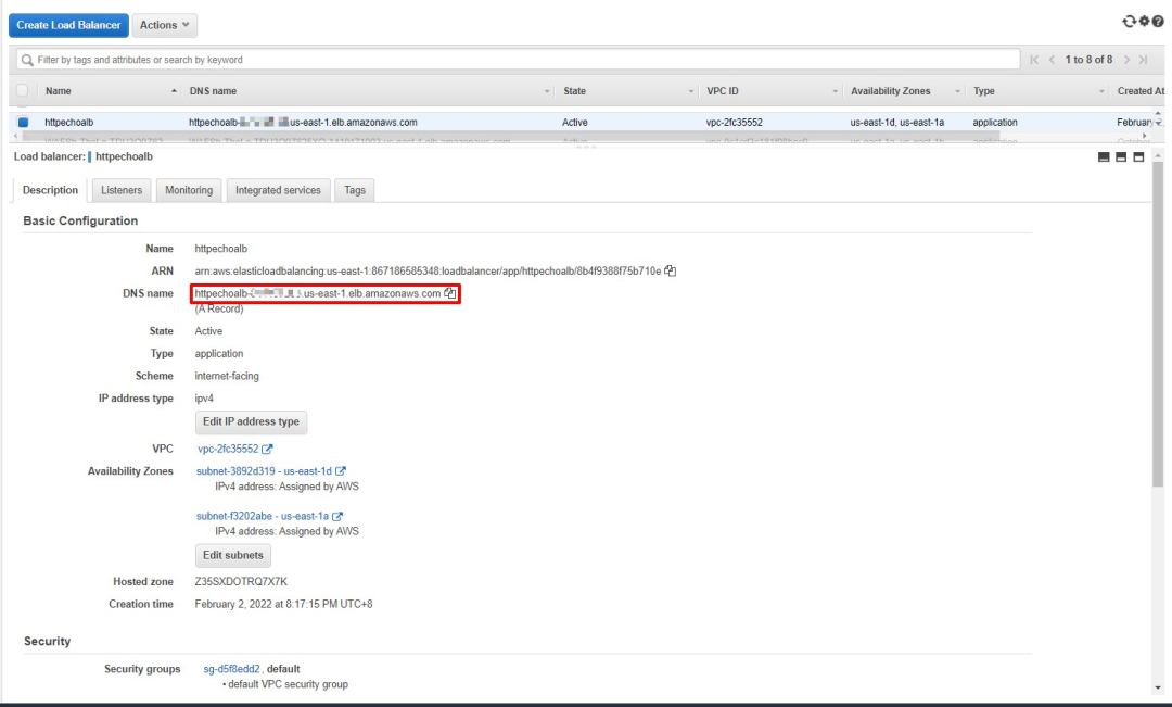 使用浏览器访问 http://httpechoalb-123456789.us-east-1.elb.amazonaws.com