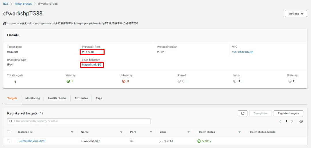 监听TCP 80端口,后端转发至EC2的TCP 88端口。