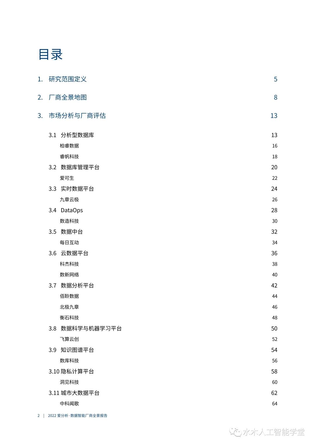 爱分析对本次数据智能项目重点研究的特定市场分析如下。同时,针对参与此次报告的部分代表厂商,爱分析撰写了厂商能力评估。