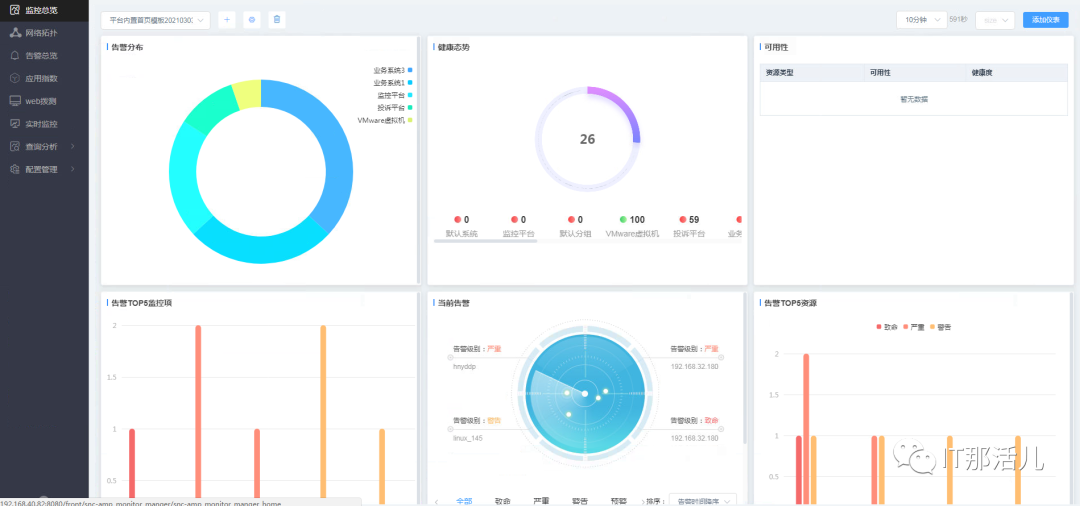 说明:按业务系统维度统计各业务系统主机资源占比情况; 系统告警分布TOP10