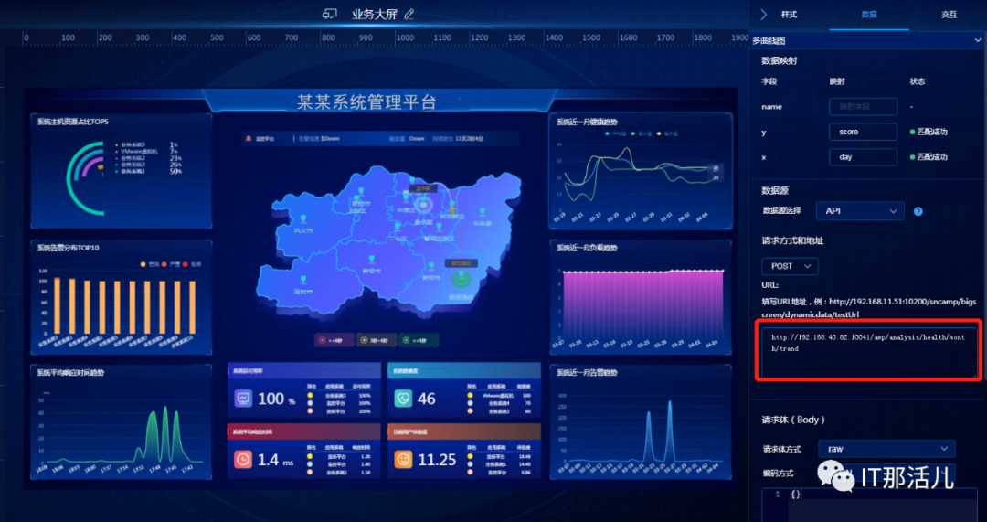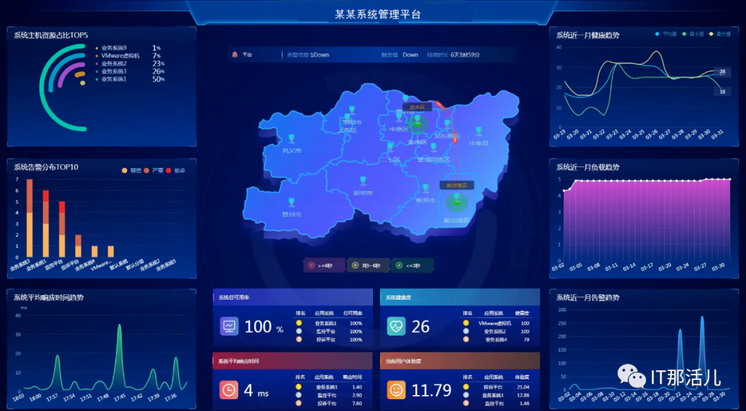 说明:统计各业务系统的系统健康度,以及所有业务系统的平均健康度; 系统平均响应时间