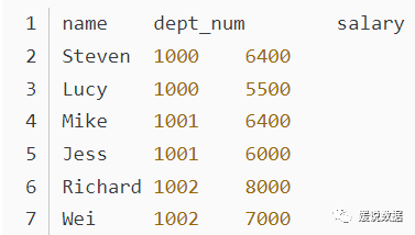 [职工姓名|部门编号|职工ID|工资|岗位类型|入职时间]- Michael|1000|100|5000|full|2014-01-29