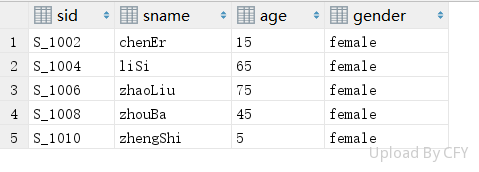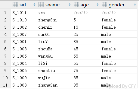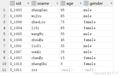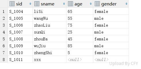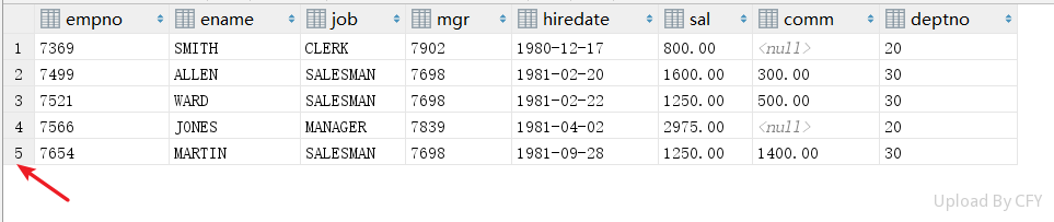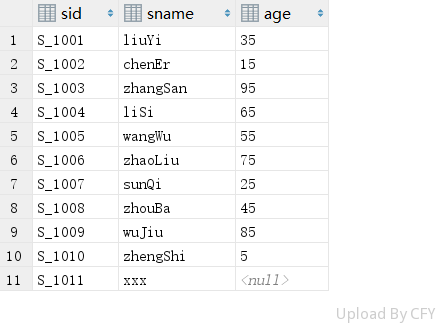 根据表字段所规定的数据类型,我们可以向其中填入一条条的数据,而表中的每条数据类似类的实例对象。表中的一行一行的信息我们称之为记录