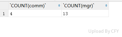 SELECT COUNT(comm), COUNT(mgr) FROM emp;