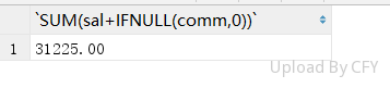 而comm列有很多记录的值为NULL,因为任何东西与NULL相加结果还是NULL,所以结算结果可能会出现NULL。下面使用了把NULL转换成数值0的函数IFNULL: