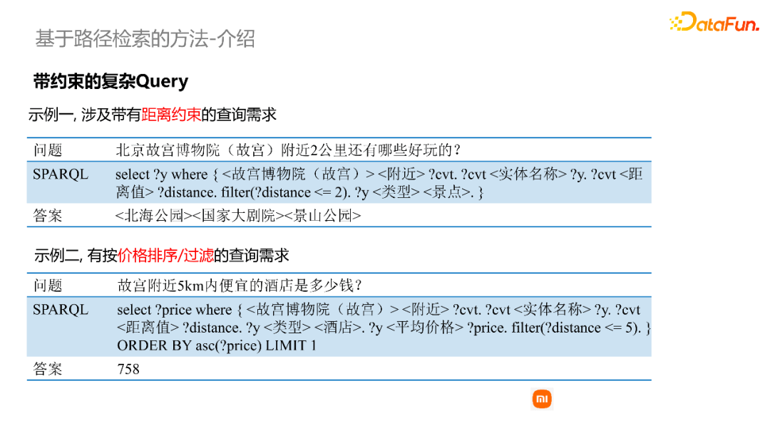 这次评测任务的难点在带约束复杂query的问答,比如“北京故宫博物院附近2公里有哪些好玩?”或者“故宫附近5km内便宜的酒店是多少钱?”。