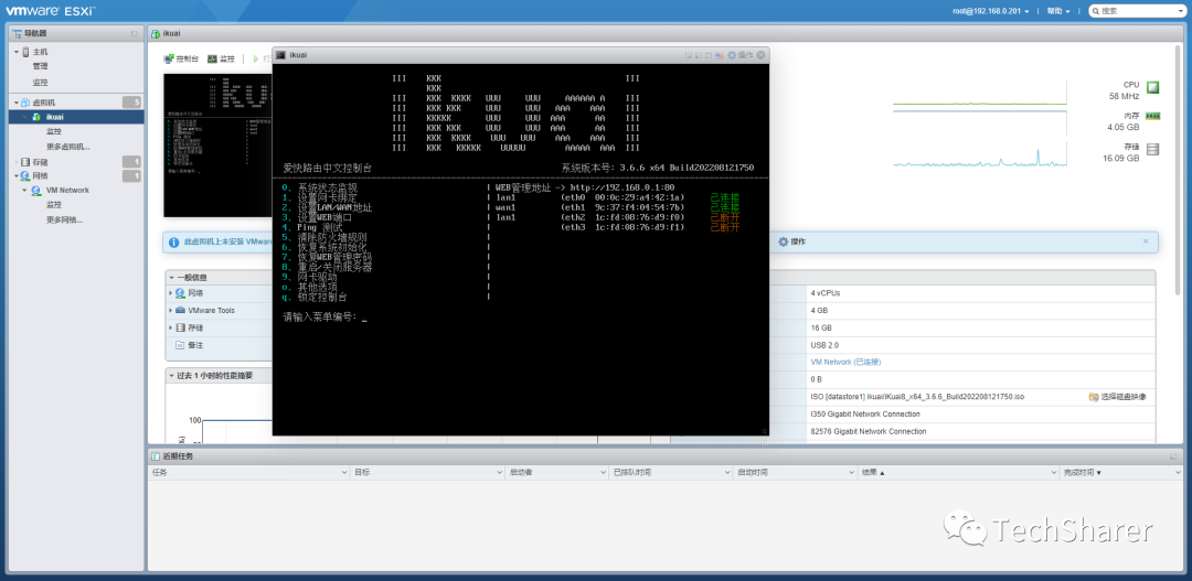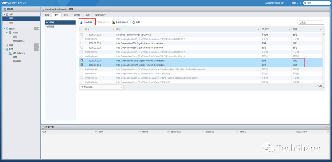 这里注意下提前将网口直通给到ikuai虚拟机,下图网卡默认是禁用状态,选择直通后,重新引导Esxi即可变为活动.