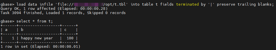 load data infile 'file://${ip_host}/opt/t.tbl' into table t fields terminated by '|' preserve trailing blanks;