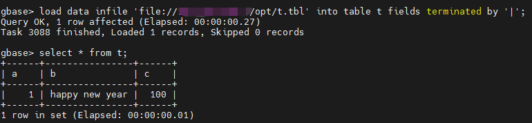 load data infile 'file://${ip_host}/opt/t.tbl' into table t fields terminated by '|';