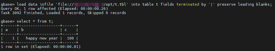 load data infile 'file://${ip_host}/opt/t.tbl' into table t fields terminated by '|' preserve leading blanks;