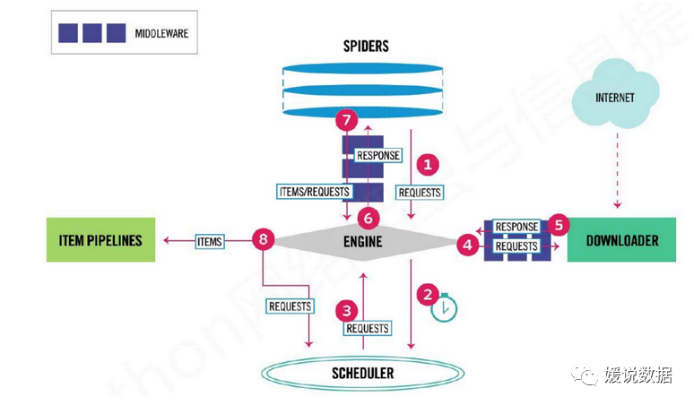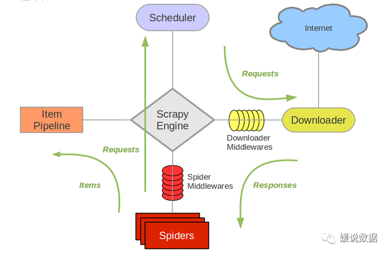 1、Scrapy Engine(引擎): 引擎负责控制数据流在系统的所有组件中流动,并在相应动作发生时触发事件。