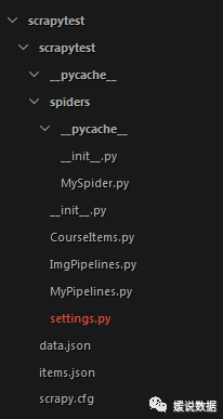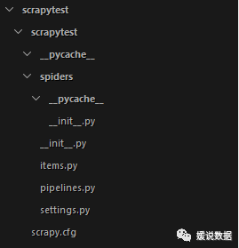 scrapytest是工程名框架会自动在当前目录下创建一个同名的文件夹,工程文件就在里边。
