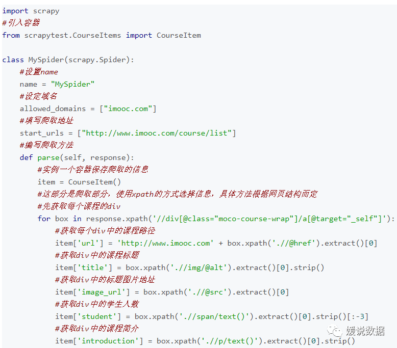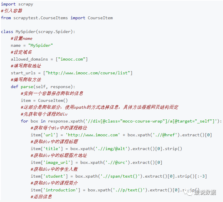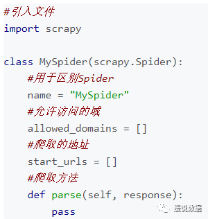 文件包含一个MySpider类,它必须继承scrapy.Spider类。
