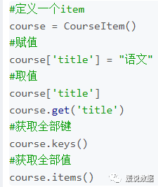 在创建完item文件后我们可以通过类似于词典(dictionary-like)的API以及用于声明可用字段的简单语法。