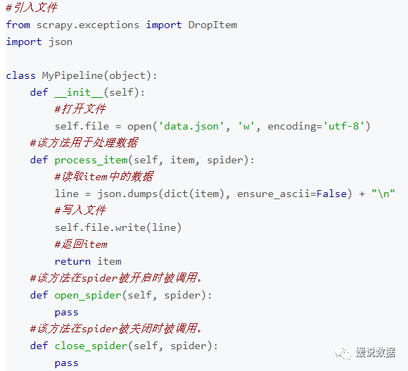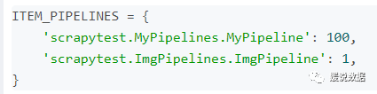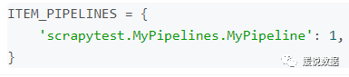 上面的代码用于注册Pipeline,其中scrapytest.MyPipelines.MyPipeline