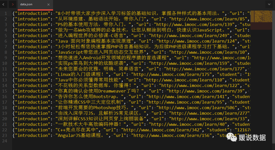 就可以在项目根目录下发现data.json文件,里面存储着爬取的课程信息。