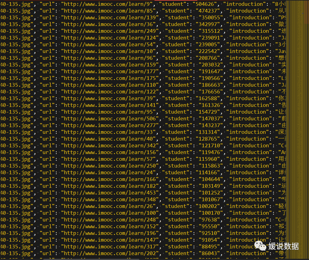 上面的处理结束后我们就成功的抓取了慕课网的全部课程信息了。