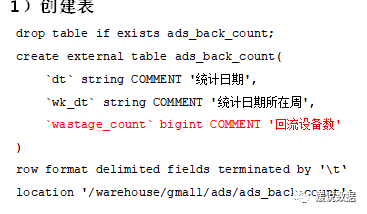 `dt` string COMMENT '统计日期,一般用结束周周日日期,如果每天计算一次,可用当天日期',