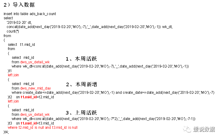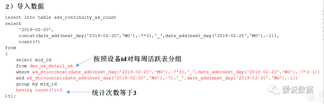 最近3周连续活跃的用户:通常是周一对前3周的数据做统计,该数据一周计算一次。