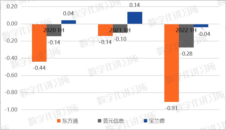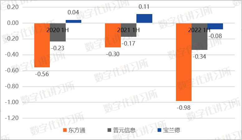 尽管东方通2022年上半年的营业收入高于普元信息和宝兰德,但在归母净利润上亏损最多。三家中间件厂商2022年上半年归母净利润均呈现负值,具体情况为东方通、普元信息和宝兰德分别为-0.91亿元、-0.28亿元和-0.04亿元,分别同比变动-544.95%、-171.09%和-127.95%。其中宝兰德2021年上半年归母净利润尚实现正值为0.14亿元,而2022年上半年也步入了负值行列。关于归母净利润的变动原因,三大厂商各有不同。其中东方通变动的具体原因并未在半年报中提及。普元信息的归母净利润变动原因主要为疫情多地散发及封控对其业绩产生的不利影响;加大研发、营销、技术服务投入也导致了亏损增加。宝兰德则是受疫情影响,招投标延后带来收入增长放缓,同时公司为激励骨干员工,实施股权激励计划,本期新增股份支付费用1038.27万元,由此导致宝兰德整体业绩承压。同时,在三家公司2022年半年报中也可看到,2022年上半年扣除非经常性损益的归母净利润均同比下降逾90%,东方通甚至达到 222.28%。