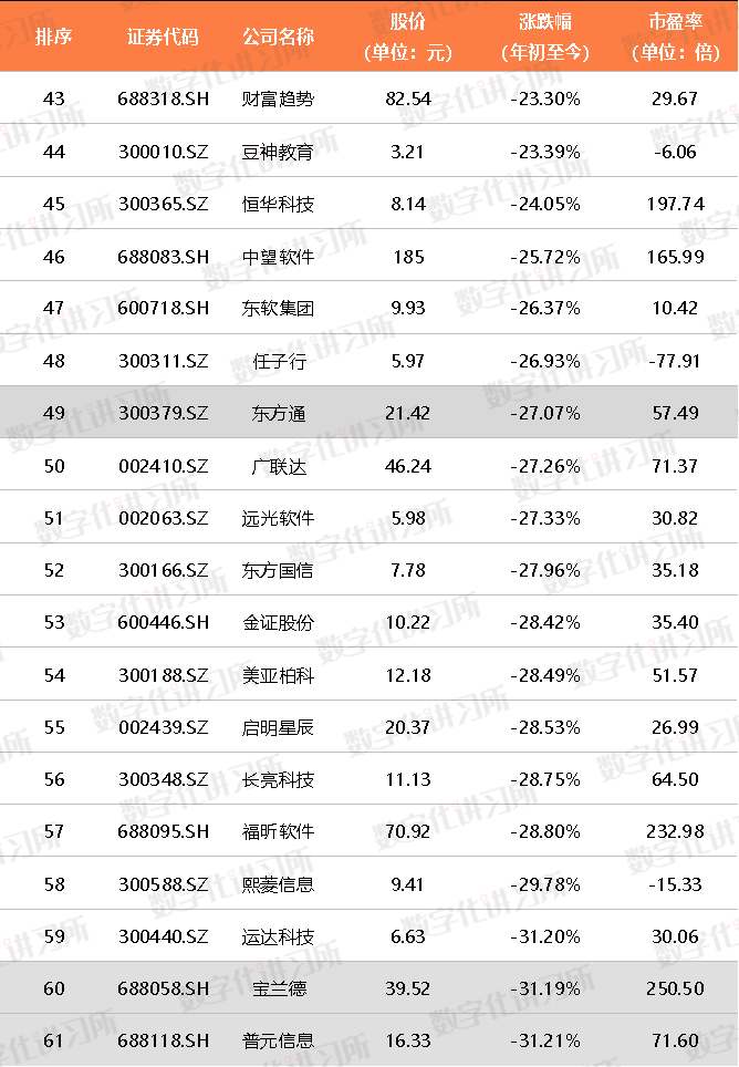 (一)东方通市值分别超出宝兰德、普元信息6倍、4倍 根据Wind显示,2022年9月20日,东方通市值为98.51亿元,普元信息市值为15.58亿元,宝兰德市值为22.13亿元。东方通市值分别为普元信息和宝兰德的6.32倍和4.45倍。截止到2022年,东方通已深耕中间件25年,产品及解决方案广泛服务于国内数千个行业及相关业务领域,拥有电信、金融、政府、能源、交通等行业领域5000多家企业级用户和2000多家合作伙伴。(二)应用软件行业板块涨幅榜榜上有名,东方通排名最前据Wind显示,截至2022年9月20日,三家中间件厂商在应用软件行业板块均为涨跌幅为负值的股票。三家厂商中东方通排名最前,9月20日的市盈率为57.49倍,今年以来涨跌幅为-27.07%。宝兰德排名60,9月20日的市盈率为250.50倍,今年以来涨跌幅为-31.19%。普元信息排名61,9月20日的市盈率为71.60倍,今年以来涨跌幅为-31.21%。表1:应用软件行业按年初至今涨跌幅排名的前43-61家企业