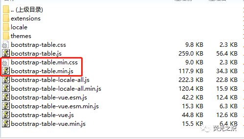 下载后解压在目录\bootstrap-table-master\dist找到图中.min文件,目前这个阶段只要用这两个文件就行。