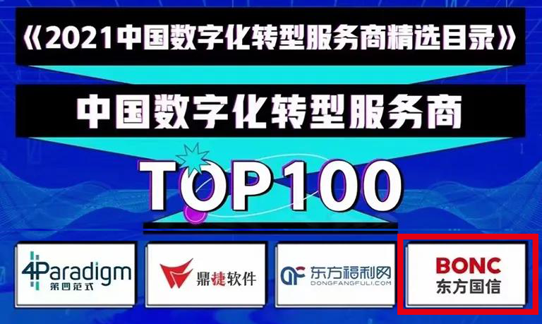 2021年4月1日,亿欧智库发布了《2021中国数字化转型服务商精选目录》及TOP100榜单。东方国信凭借深耕大数据领域20余年的技术优势,以及成功赋能企业数字化转型的丰富经验,成功入选榜单。