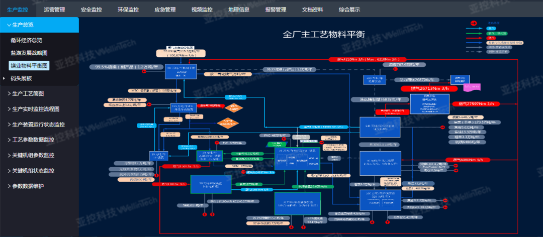 并且实现集团日常生产数据管理的需求对生产以物料产业链进行产品产量的统计分析,掌握生产的主要产品生产计划、产量、计划的完成情况,原料、产品的库存情况,能源水、电、气、汽消耗情况。并且加入报警系统,实现突发重大事故的预测报警。