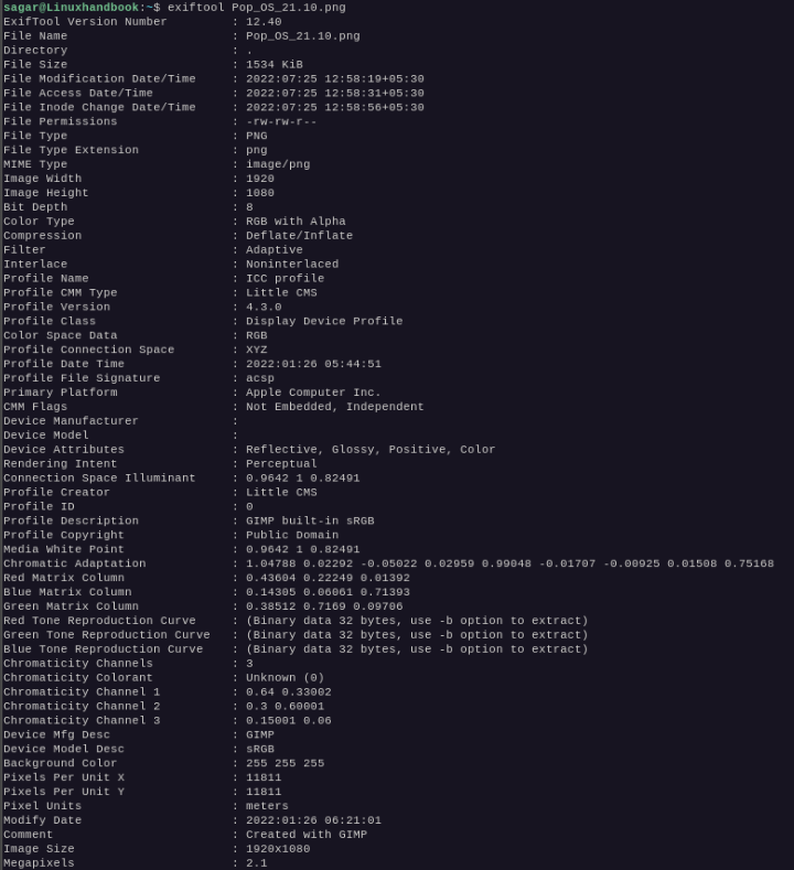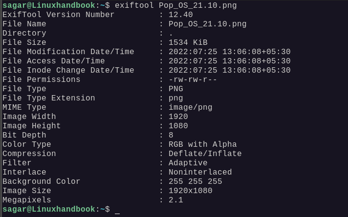 ExifTool 可以用于查看与图片相关的元数据,可使用如下语法格式: