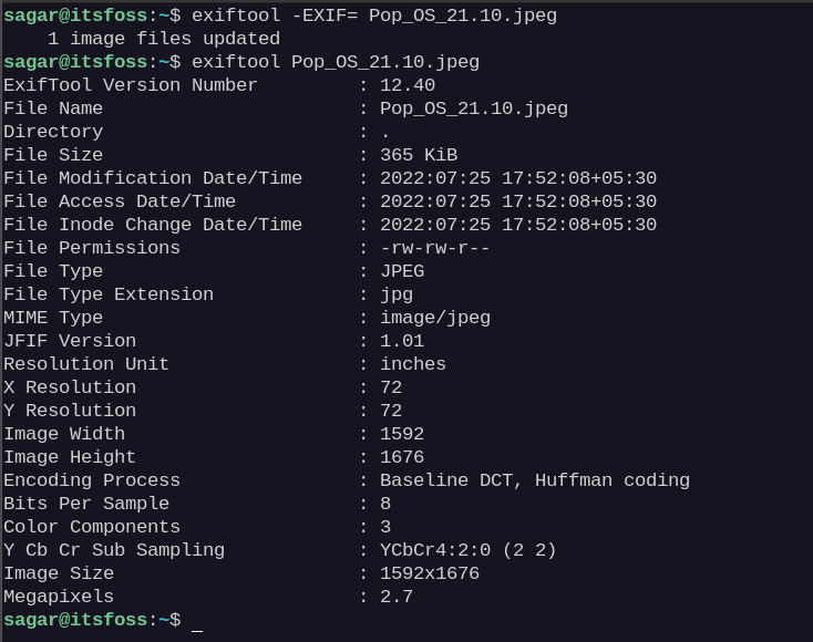删除 exif 数据后,我们再来使用上一个命令来检查一下,是否删除成功:
