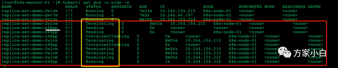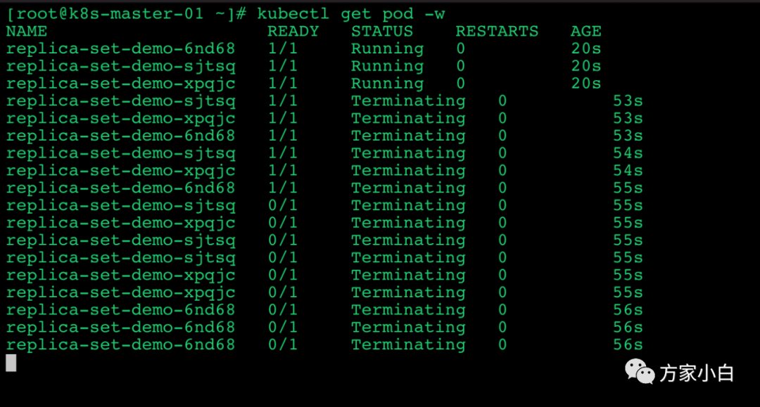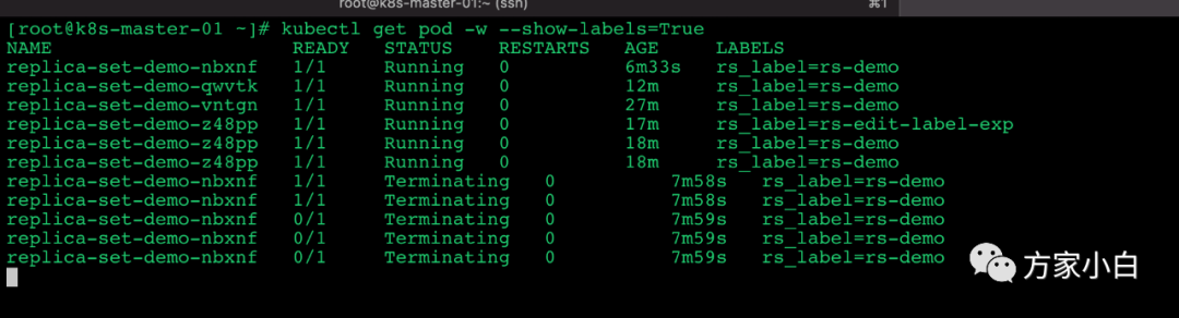 我先把 标签修改成原来的 kubectl label pod replica-set-demo-z48pp rs_label=rs-demo --overwrite=True