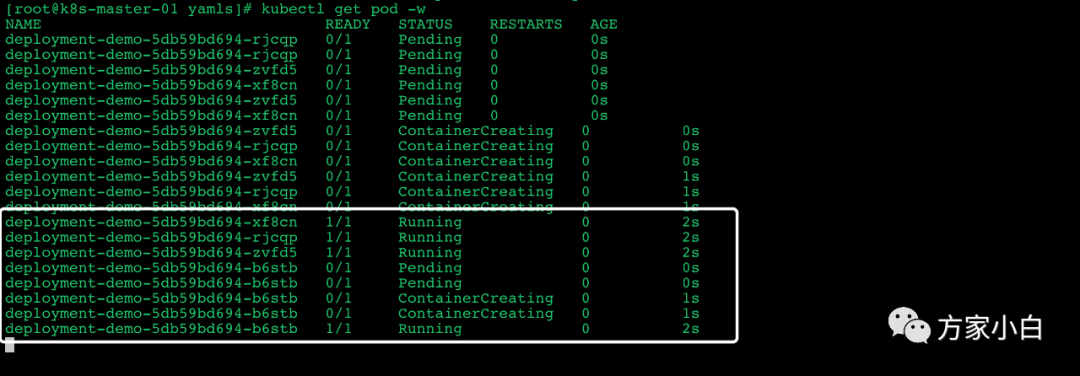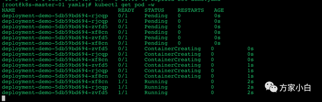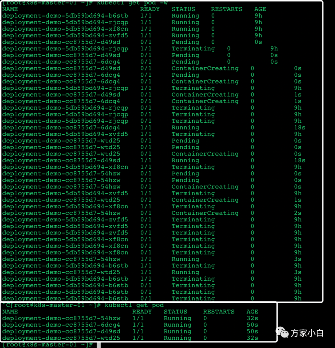 删除其中的任意一个pod然后 可以看到新窗口中出现了如下的变化:删除的