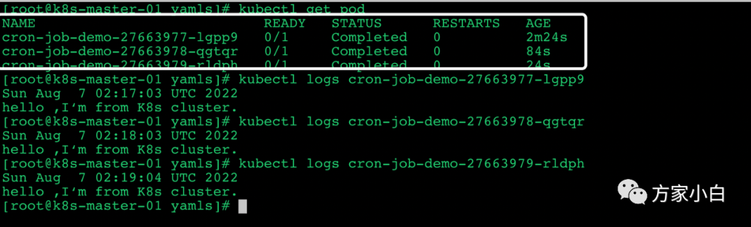 - date; echo 'hello ,I‘m from K8s cluster.'