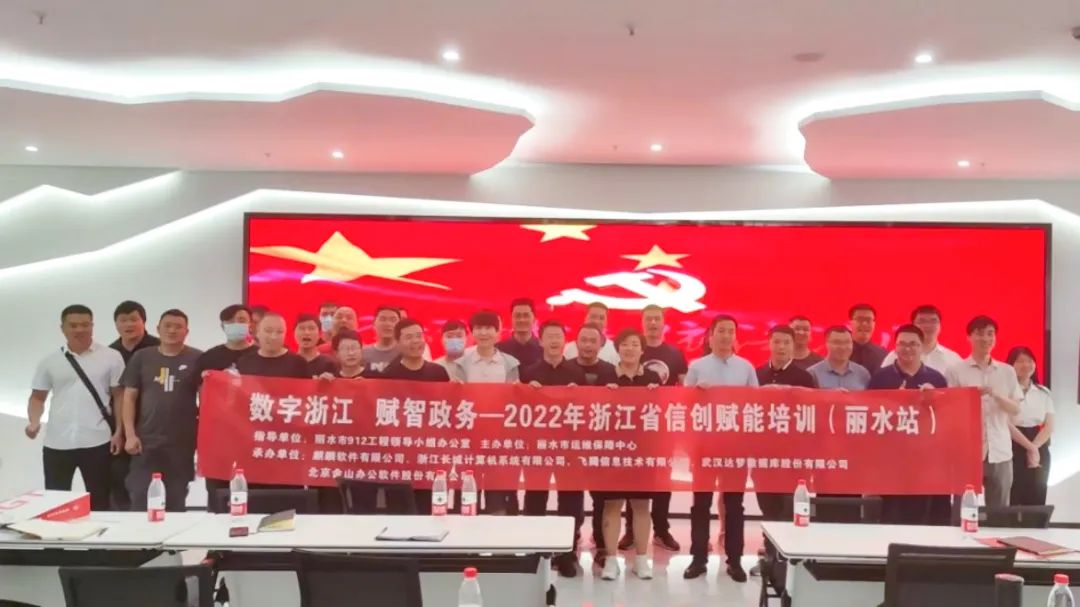 2022 年 9 月 14 日,由丽水市912工程领导小组办公室指导,丽水市运维保障中心主办,麒麟软件有限公司、浙江长城计算机系统有限公司、飞腾信息技术有限公司、武汉达梦数据库股份有限公司、北京金山办公软件股份有限公司联合承办的《数字浙江,赋智政务——2022年浙江省信创赋能培训(丽水站)》活动在绿谷信息产业园顺利开展!