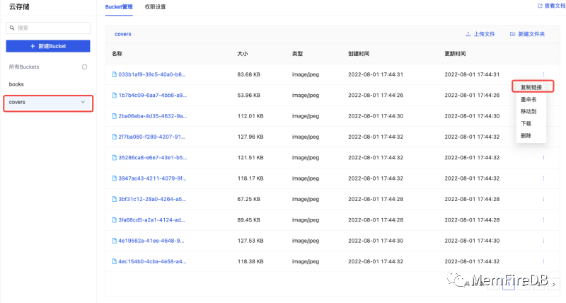 无妨,可以将本地图书与封面文件悉数上传到MemFire Cloud提供的云存储服务中。