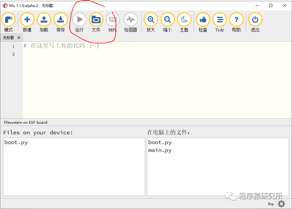 在工具栏中点击 文件,进入 MicroPython 的文件列表: