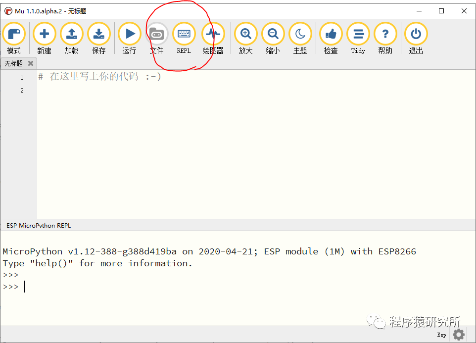 刷入固件之后,那么就需要使用编辑器来编程了,有两种主流编辑器支持 MicroPython, 一个是 Mu, 还有一个是 PyCharm,对于新手来说 Mu 操作会简单一些。