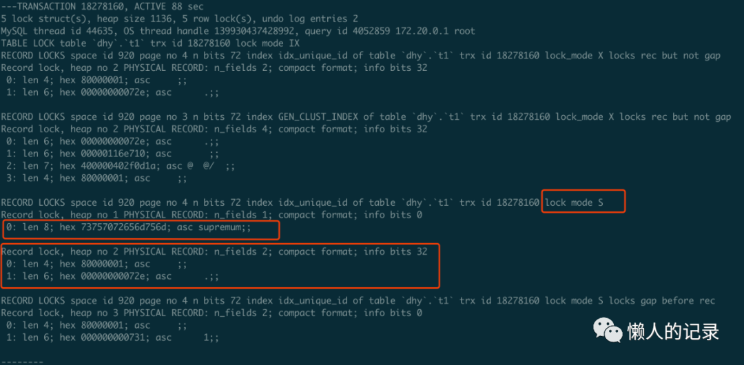 这里会发现在supremum添加S类型的Next-Key Lock加锁成功的,还要继续分析为何会添加这个S类型的Next-Key Lock。