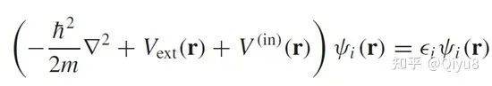 波函数被证明对获取材料的宏观性能(如光学性质、力学性质、热力学性质、磁学性质)极具价值,现实中的物质由多个电子构成的,它们的波函数该如何求解?一个铁原子有26个电子,两个有52个电子,计算2个铁原子相互作用时,需要计算任意一个与其它51个电子的相互作用,当计算原子数增加时,计算量呈指数增加,100个铁原子的计算量恐怕都是天文数字了,更不要说几十万个原子(纳米材料),这就不得不提著名的Kohn-Sham公式,他将多电子体系近似用一个或几个函数来代替求解多体薛定谔方程,计算量大大减少,Kohn因为这个公式获1998年Nobel化学奖,本文要介绍的HPC应用QE就是这个公式的开源实现,在量子化学领域被广泛应用,从官网介绍来看,“QUANTUM ESPRESSO是一种用于电子结构计算和材料建模的量子化学方法的软件套件,在GNU通用公共许可证下免费分发。它基于密度泛函理论,平面波基组和赝势(包括范数守恒和超软)理论。”,这段文字看不懂没关系,只要记住求解公式是这个就行了: