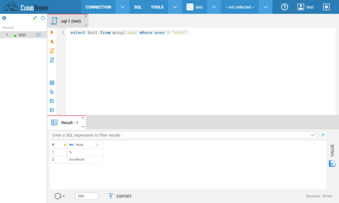 通过SQLE查看,当前用户拥有的数据源如下图所示: