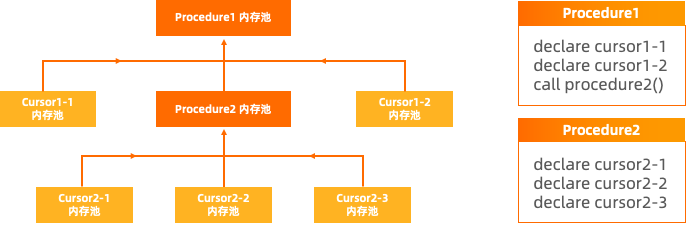 存储过程执行过程中的内存占用主要为缓存的cursor,因此我们对单个cursor所能使用的最大内存以及整个存储过程在执行时占用的内存进行了限制,由两个参数控制,PL_CURSOR_MEMORY_LIMIT和PL_MEMORY_LIMIT。