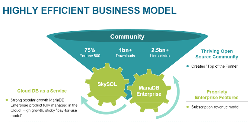 但随着在2014年 MariaDB的商标权从 MariaDB基金会转移到商业化公司后, Monty也不能免俗地开始了MariaDB的漫漫商业化之路。而即使按最新财务预测并保持年复合增长率在31%,那么估计MariaDB也至少要到2025年才能达到过1亿美金的收入水平。这将是一条耗时整整11年的穿越之旅。如果没有足够的资金支持,显然很困难。同样地,成立于2007年的 MongoDB,也差不多花了整整十年时间的努力,才在2017年达到了1.15亿美金的收入水平并成功上市。