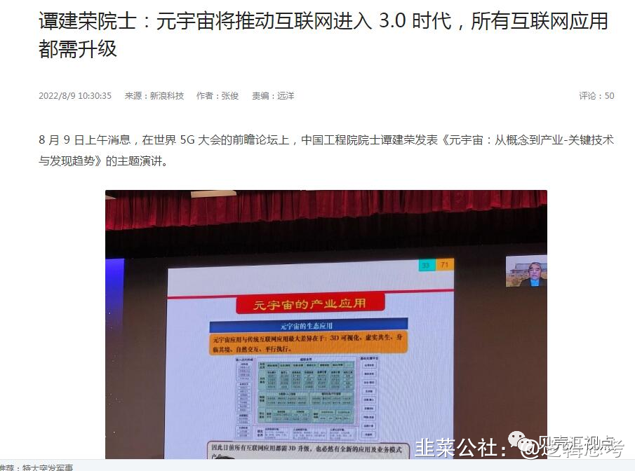 8 月 9 日上午消息,在世界 5G 大会的前瞻论坛上,中国工程院院士谭建荣发表《元宇宙:从概念到产业-关键技术与发现趋势》的主题演讲。